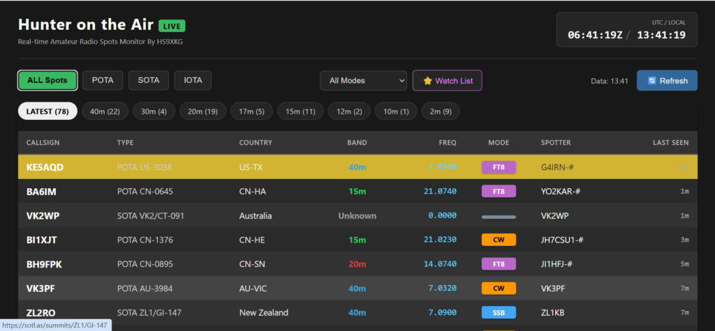 แบ่งปันเครื่องมือ Spotting Dashboard สำหรับสาย DX และ Hunters นักวิทยุสายล่า!