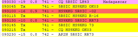 - Operator ผู้คุ้นเคย: 5R8IC คือ Call Sign ของ Sylvain (F6ICX) นักวิทยุชาวฝรั่งเศส ซึ่งมาดากัสการ์เคยเป็นอาณานิคมของฝรั่งเศสมาก่อน จึงไม่แปลกที่จะมีนักวิทยุจากฝรั่งเศสแวะเวียนไปออกอากาศบ่อยๆ และ Sylvain ก็เชี่ยวชาญการใช้รหัสมอร์ส (CW) และ Digital Mode มากครับ
