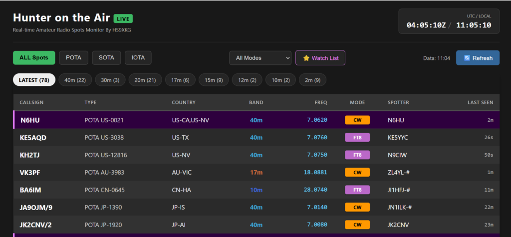 สวัสดีเพื่อนสมาชิกนักวิทยุสมัครเล่นและสาย Tech ทุกท่านครับ หากใครที่ติดตาม https://kazth.com หรือแวะเวียนมาที่ เฟซบุ๊คผมอยู่บ้างคงจะได้เห็นโปรเจกต์ “Hunter on the air” ซึ่งเป็น Spotting Dashboard ที่ผมตั้งใจสร้างขึ้นมาเพื่อรวบรวมข้อมูลสถานีที่กำลังออกอากาศจากสถานที่ต่าง ๆ ทั่วโลกไว้ในที่เดียว